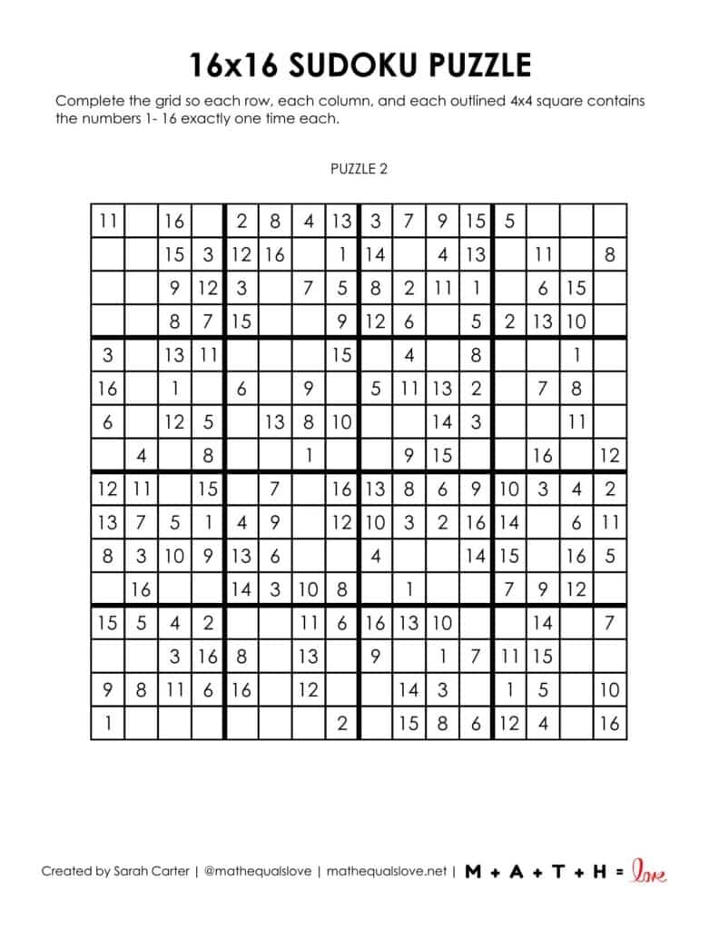 Are you a fan of Sudoku puzzles? If so, you’re in luck! We have a fantastic 16×16 Sudoku printable that will keep you entertained for hours on end. Whether you’re a beginner or a seasoned pro, this larger grid size will surely test your skills.