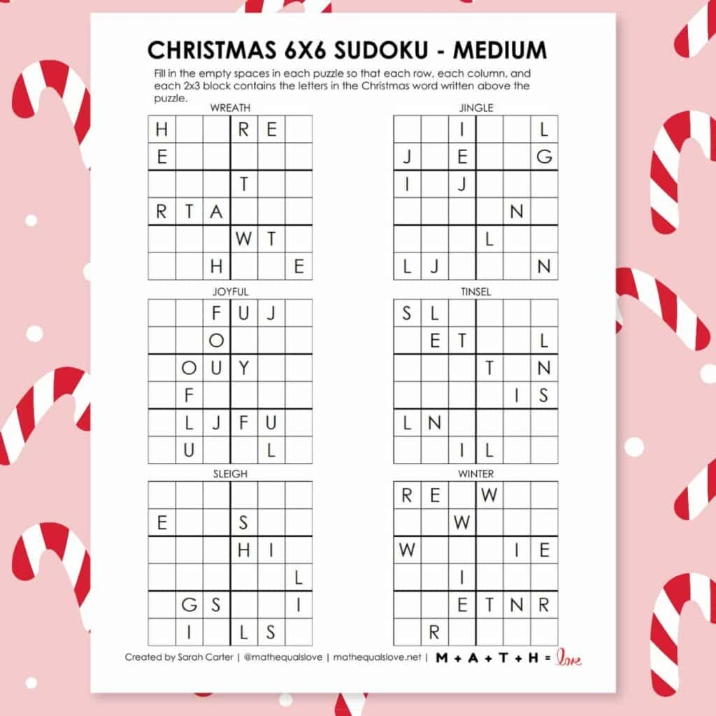 Christmas 6×6 Sudoku Puzzles Free Printable PDF