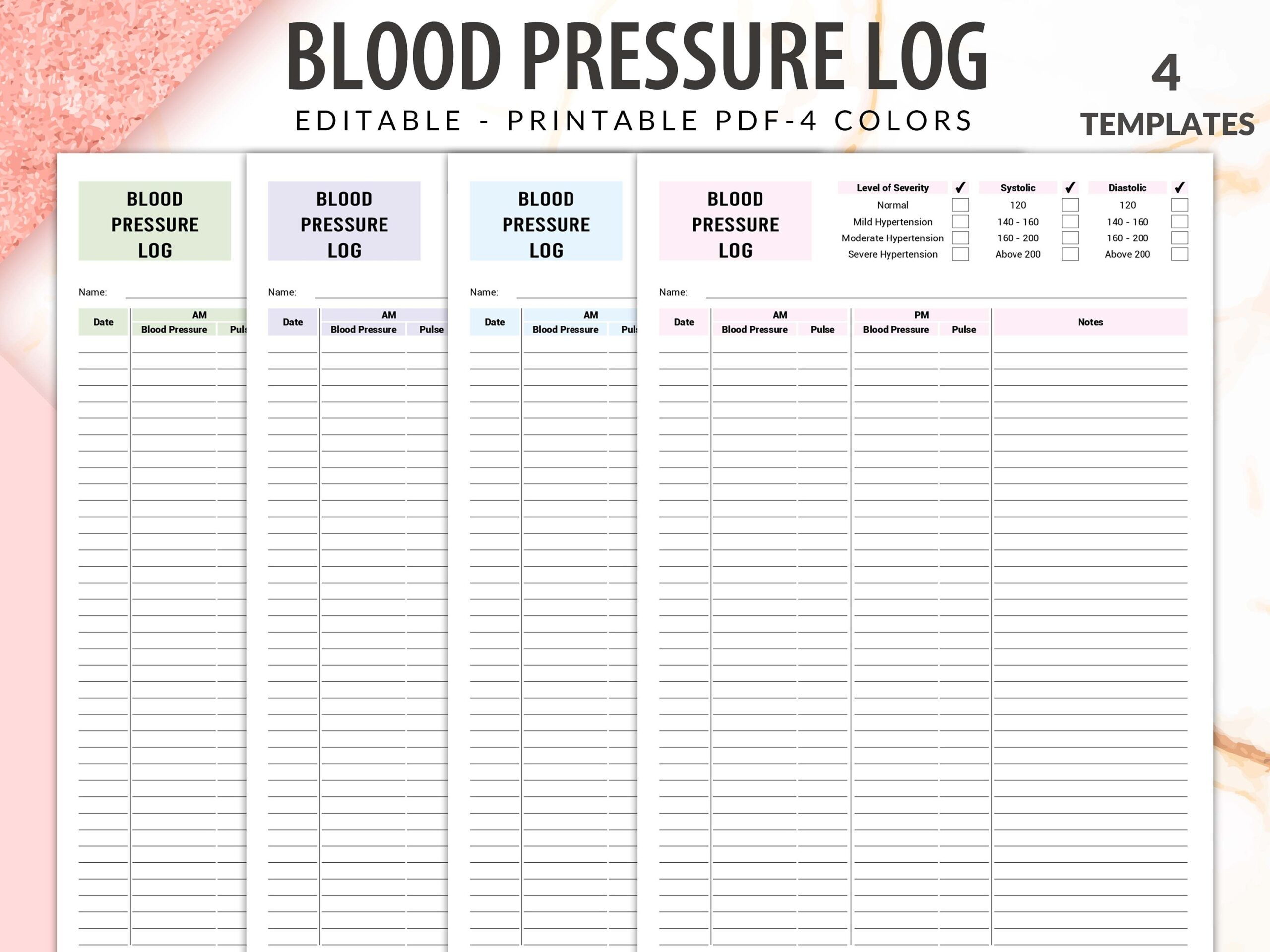 Blood Pressure Chart Printable Instant Download Medical Tracker Editable Blood Pressure Tracker BP Tracker Blood Pressure Log Etsy
