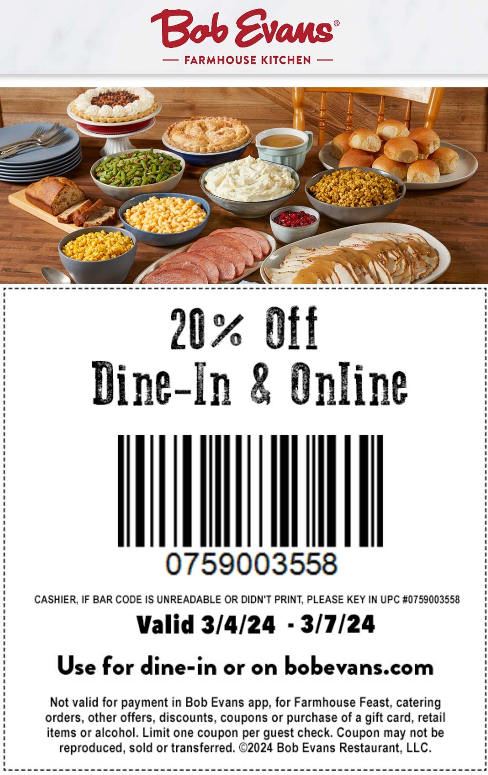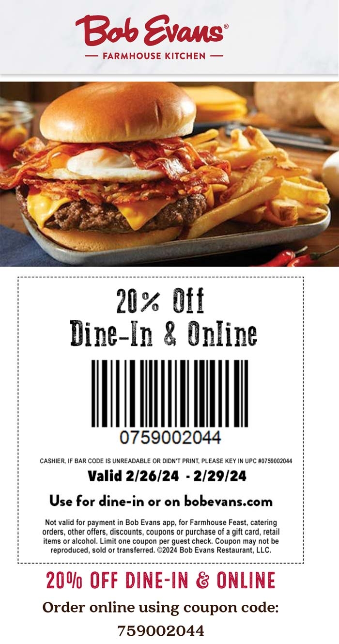 20 Off At Bob Evans Restaurants Or Online Via Promo Code 759003558 Bob Evans August 2025 Coupons Promo Codes Deals