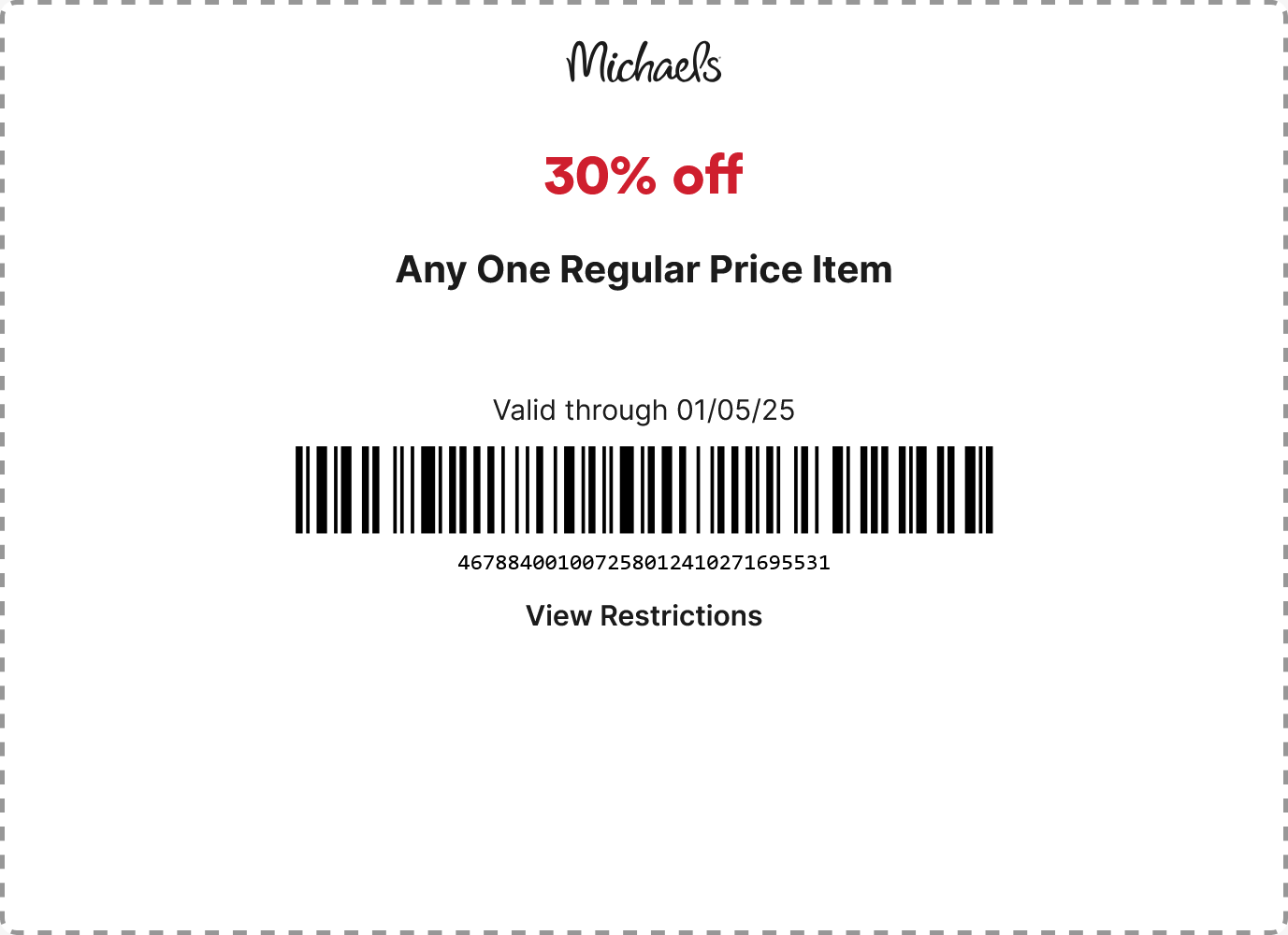 30 Off A Single Item At Michaels Or Online Via Promo Code DECMIK30 Michaels The Coupons App