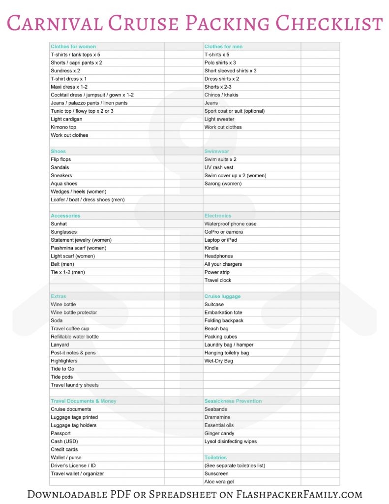 Carnival Cruise Packing List Printable Checklist Included Flashpacker Family Travel Blog Travel With Kids