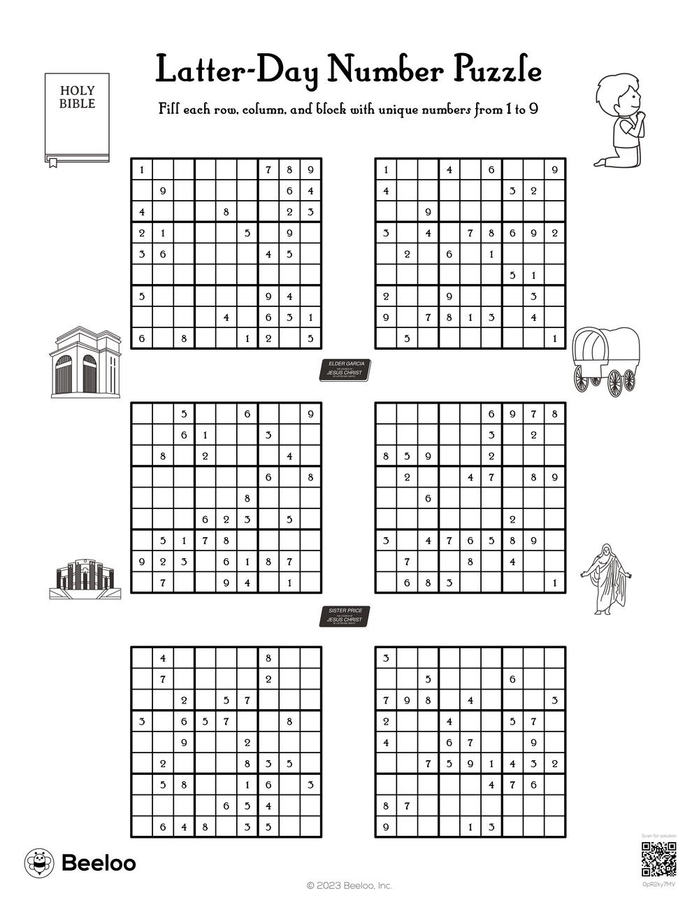 Latter day Saint themed Sudoku Puzzles Beeloo Printable Crafts And Activities For Kids