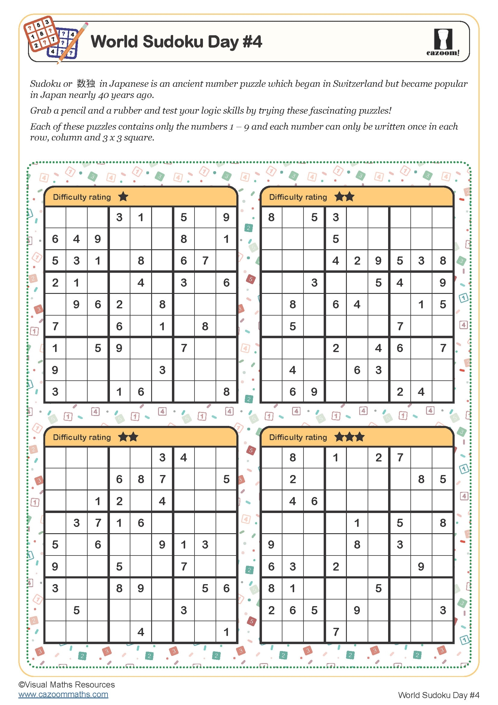 World Sudoku Day 4 Worksheet PDF Printable Worksheet