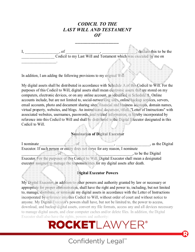 Free Codicil To Will Make Download Rocket Lawyer