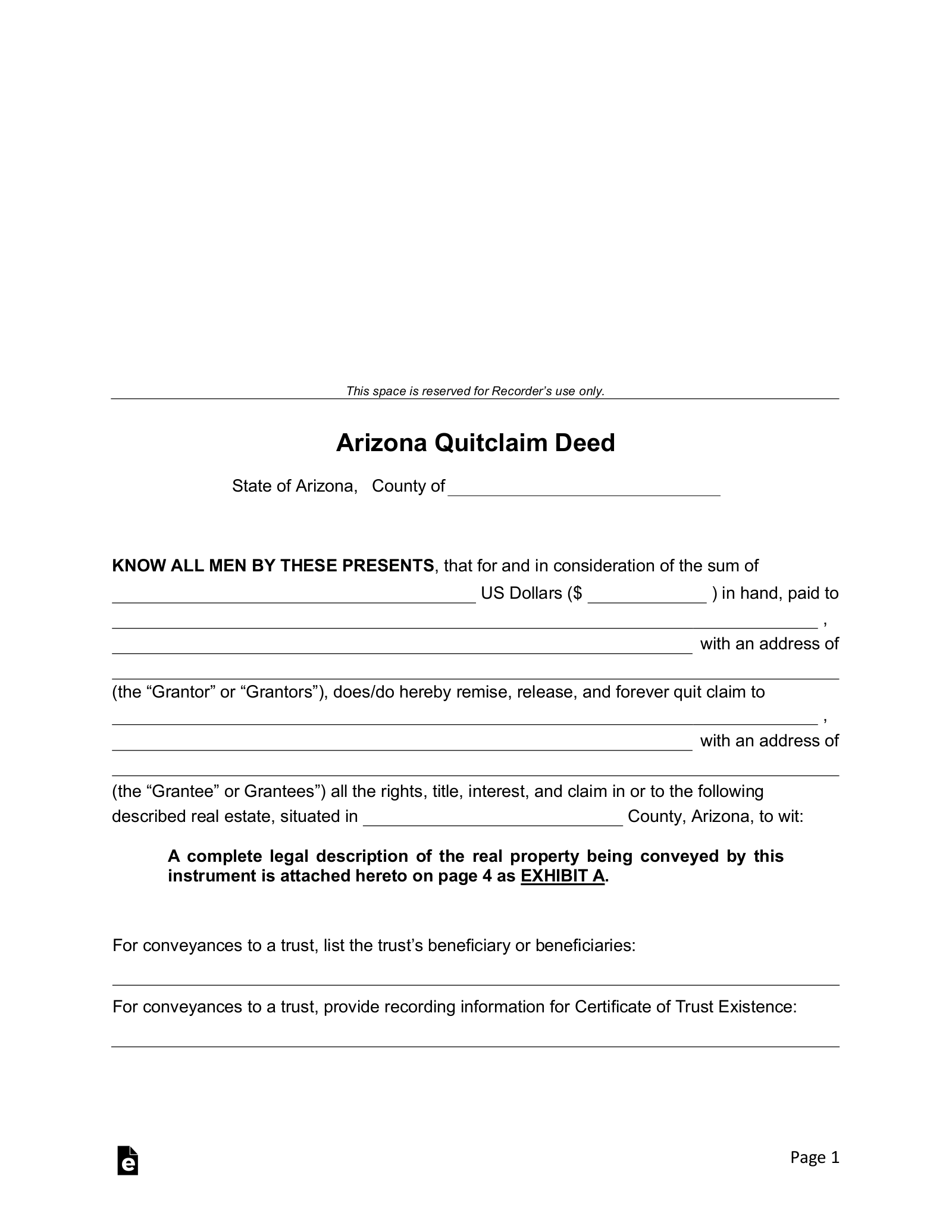 Free Quit Claim Deed Form PDF Word EForms