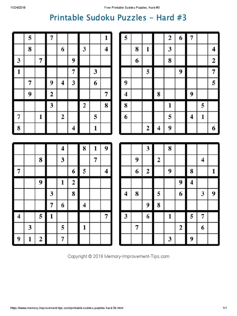 Free Printable Sudoku Puzzles Hard 3 PDF Worksheets Library