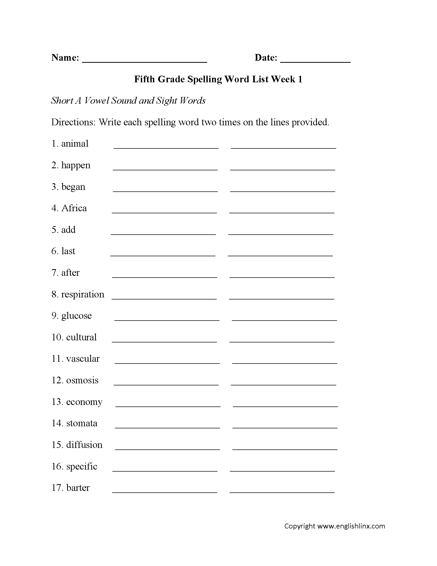 Spelling Worksheets Fifth Grade Spelling Words Worksheets