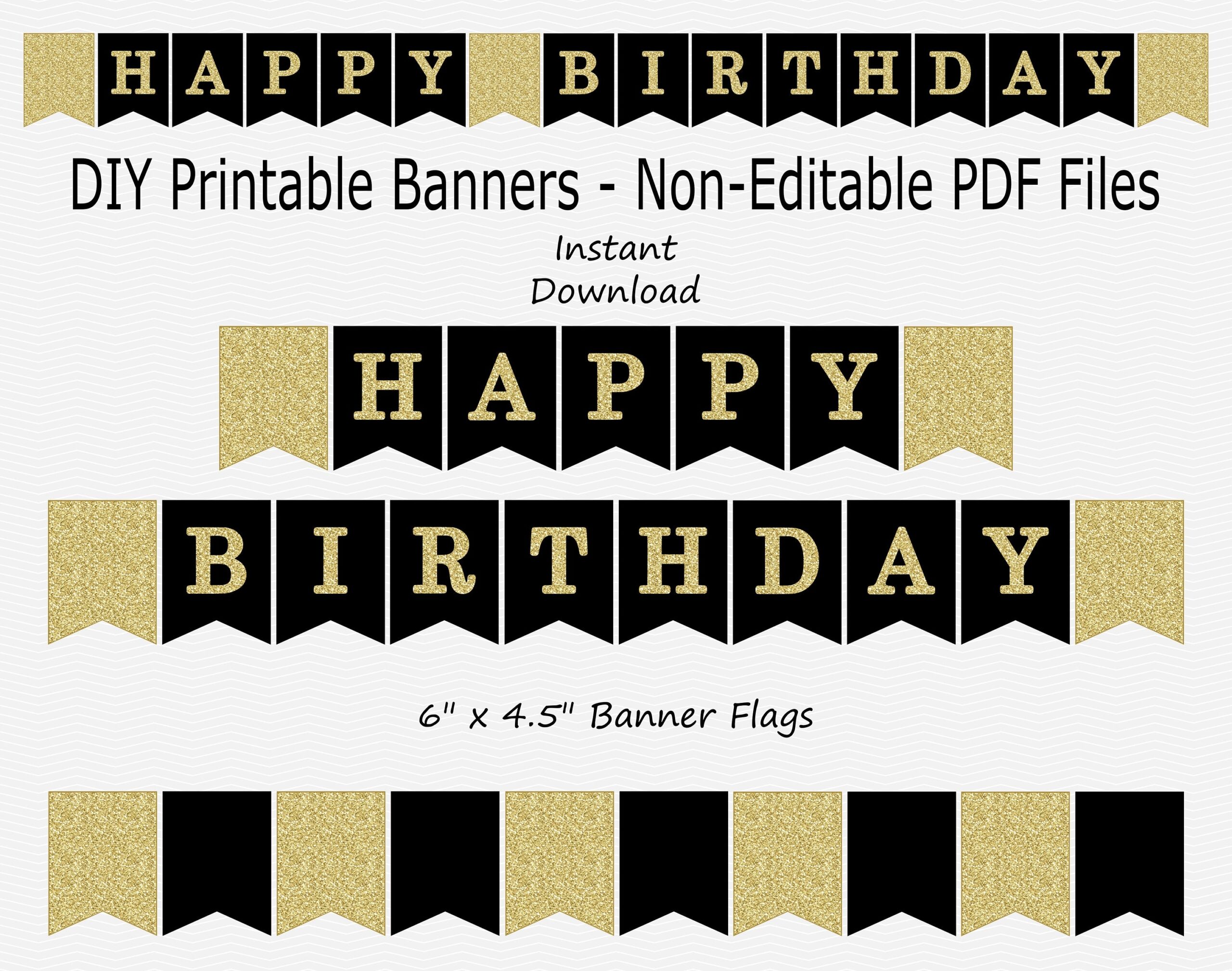 Happy Birthday Banner Black Gold Glitter PRINTABLE INSTANT DOWNLOAD Etsy