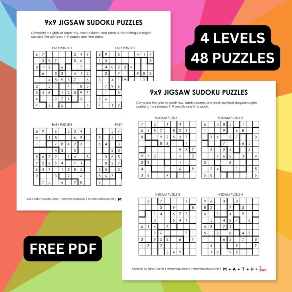 9×9 Jigsaw Sudoku Puzzles Math Love