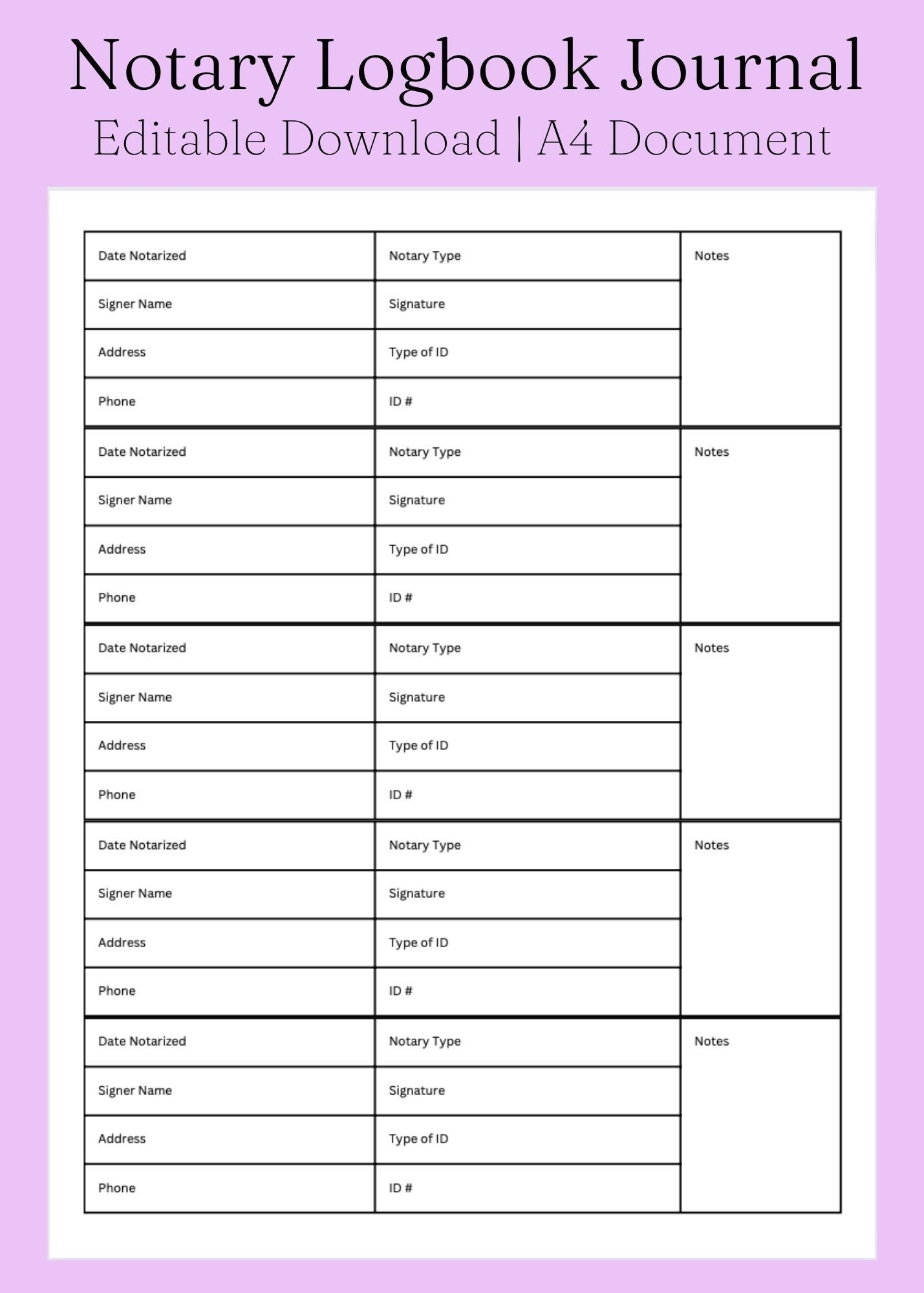 EASY Notary Logbook Journal Notary Documents Notary Signing Form General Public Notary Logbook Editable Printable Download Etsy