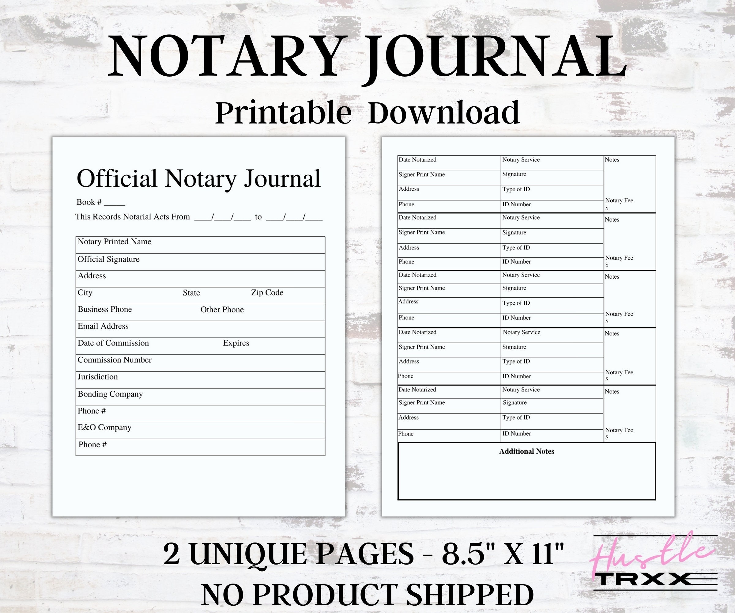 Printable Notary Journal Notary Log Notary Book Printable PDF Instant Download Etsy