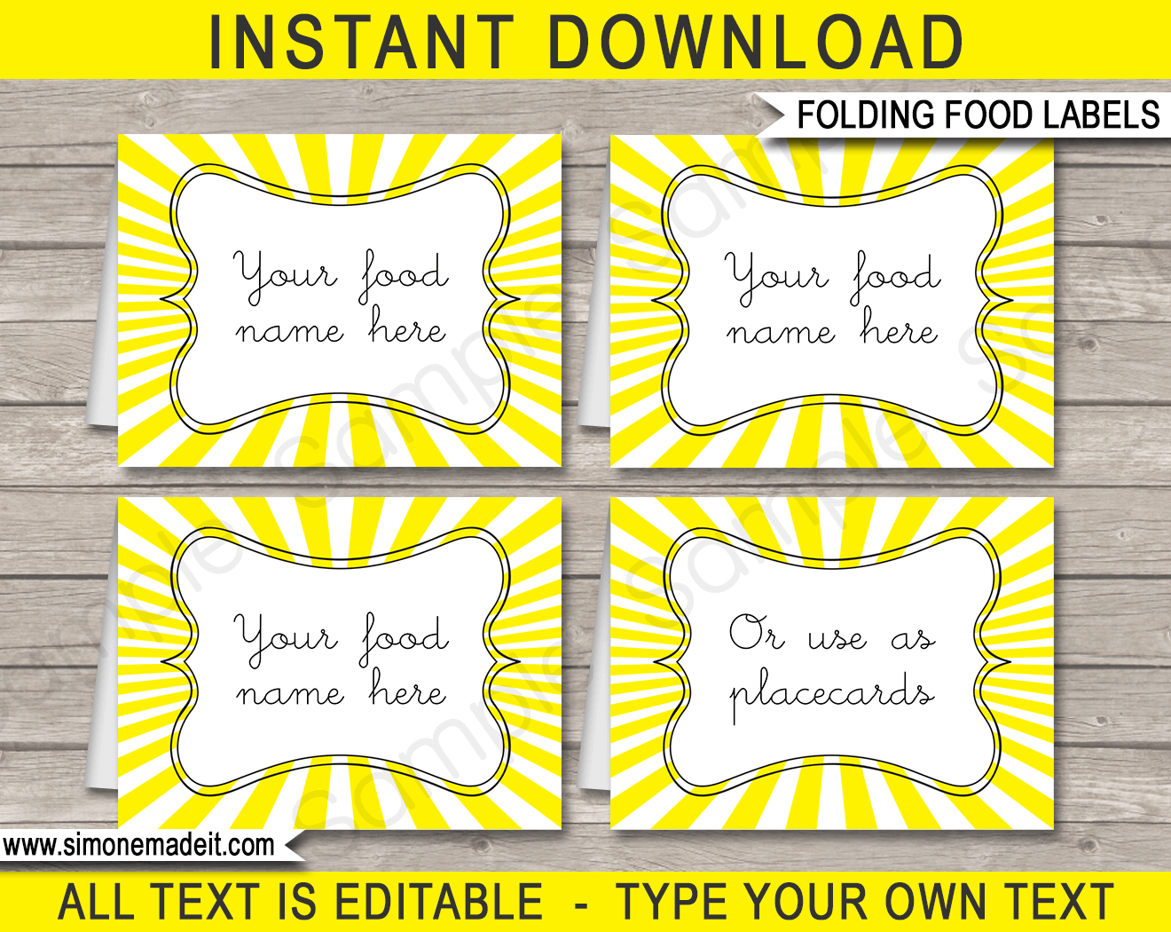 Sunshine Party Food Labels Template Printable Birthday Decorations