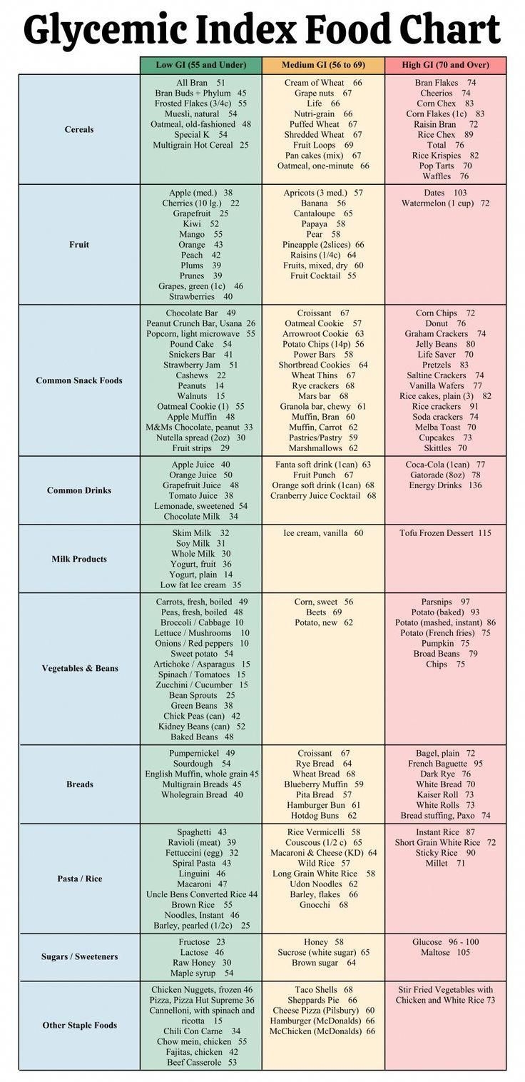 Printable Glycemic Index Food Chart With High And Low GI Carbs BestFoodsToEatOnADiet