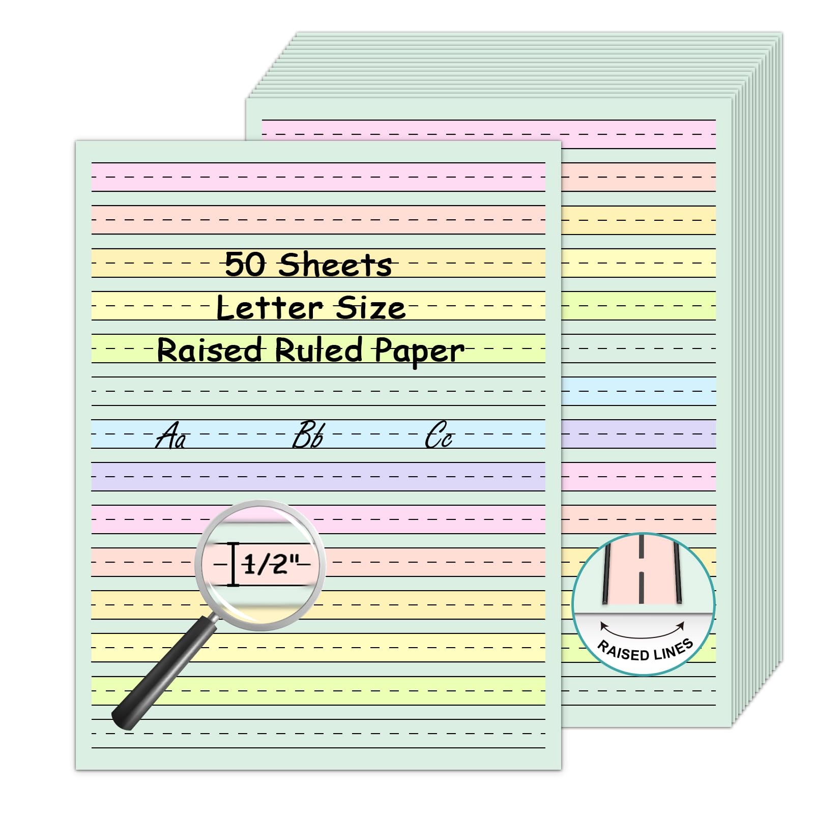Amazon Handwriting Paper 8 5 x11 Colored Primary Writing Paper For Kids With ADHD 0 5 Spacing Multi Sensory Ruled Handwriting Tablet Dysgraphia Pad For 2nd Grade And Up 50 Office Products