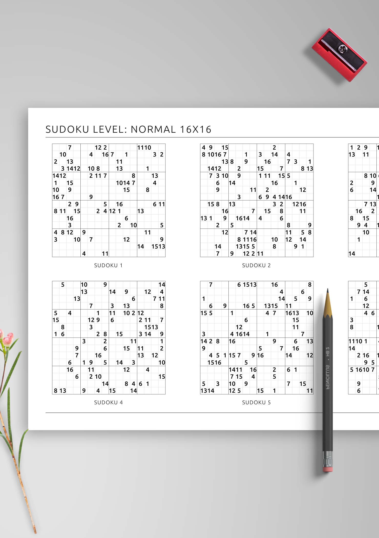 Free 16×16 Printable Sudoku Puzzles PDF